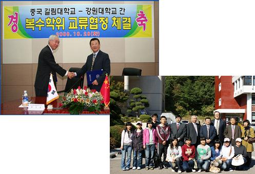 길림대학 경제관리학원과 복수학위제 협정(2008.10.28) 지역경제학과는 중국의 1800개의 4년제 대학 가운데 8위의 명문 대학인 길림대학 경제학원(4개전공으로 구성)와 학위협정을 통하여 강원대와 길림대학 졸업장을 동시에 받을 수 있는 길을 열었다. (위사진) 길림대학과 경제학원과 지역경제학과의 학과 간 복수학위제 협정 체결 후 지역경제학과 교환학생들과 함께 한 기념촬영. (아래사진)