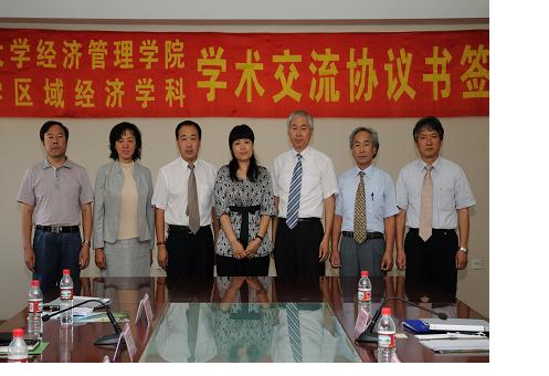 길림농업대학 경제관리학원장 교환학생에 관한 협의 후의 기념사진 2008년 8월21일길림농업대학 경제관리학원과 지역경제학과의 교환학생 프로그램을 실현시키기 위하여 행정적인 절차를 밟기로 했다.